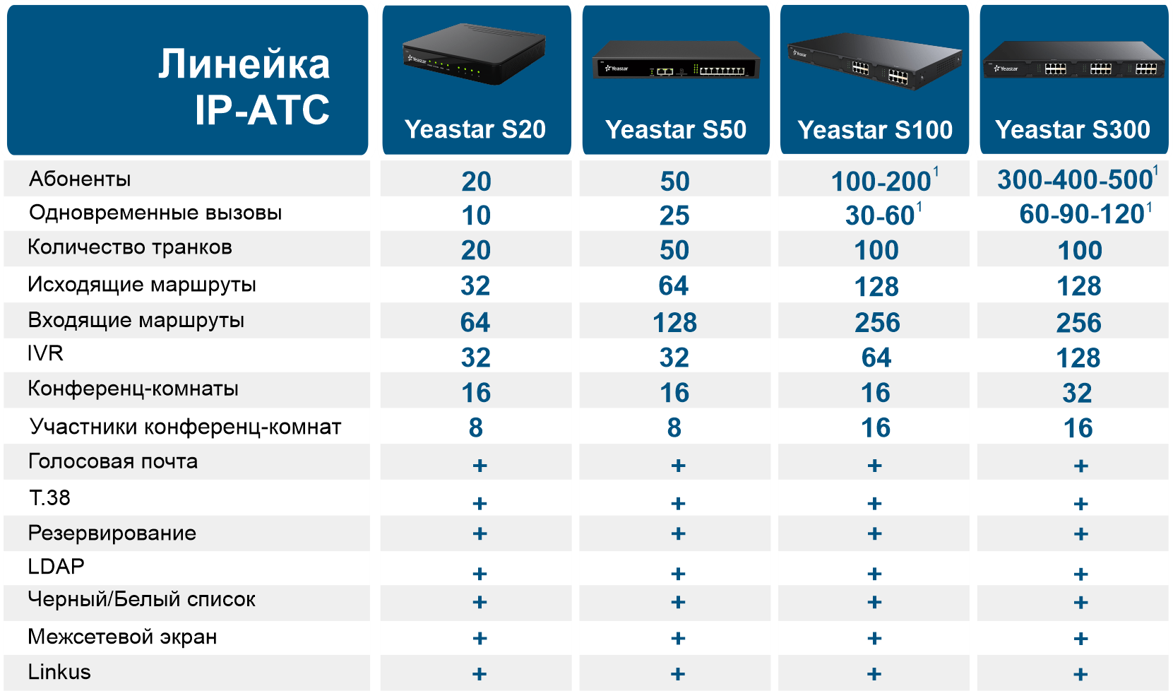 - Готовая к работе АТС от 20 до 2000 абонентов;